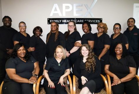 Standing left to right: Natalie Thomas (Office Manager), Diana Williams (Office Administrator), Courtney Rhodes (HR Director), Shivonne Reid (Clinical Program Manager), Cynthia Ukaogo (Intake Manager), Ava Clifton (Office Administrator), Rachel Herring (Executive Director), Caleb Boyett (Operations Manager) Sitting left to right: Madison Partlow (Revenue Cycle Manager).